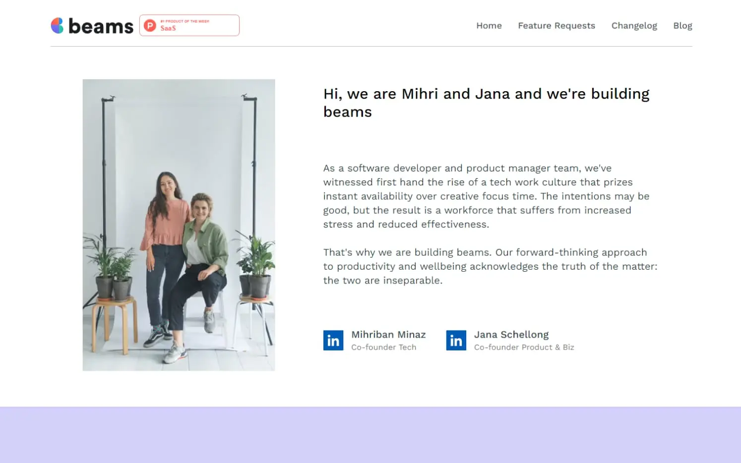 Beams is a mindful work solution that suggests distraction-free deep work blocks and reminds you to take breaks.